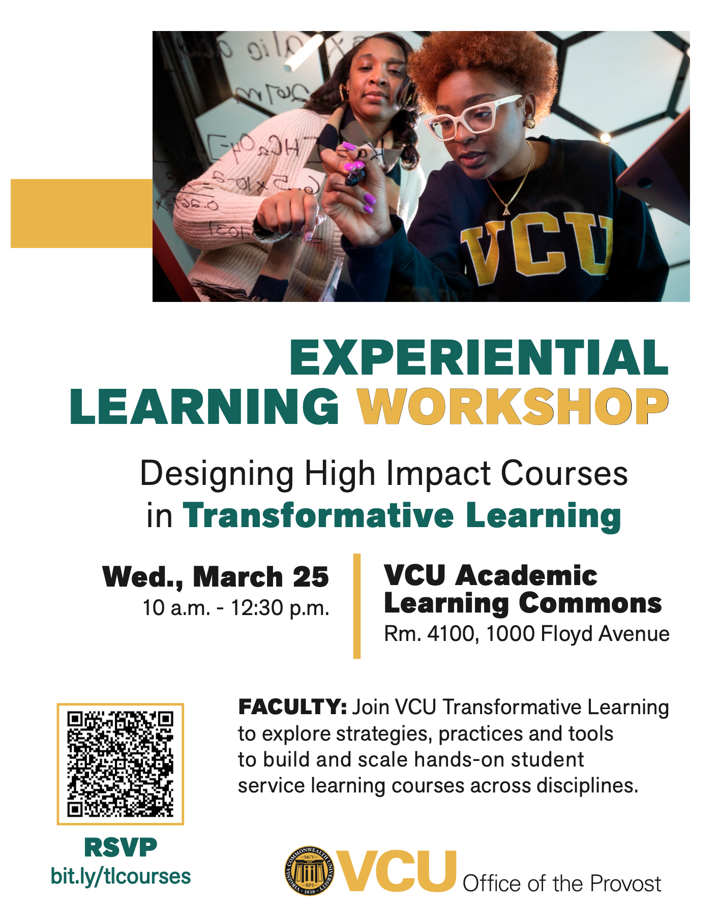This workshop explores experiential and transformative learning, as well as the high-impact teaching practices that help students achieve meaningful outcomes across disciplines. Participants will learn how experiential learning, combined with critical reflection, can make learning more authentic and lead to transformative experiences. The session includes practical strategies, examples from existing courses, and an opportunity to apply these ideas to your own teaching.